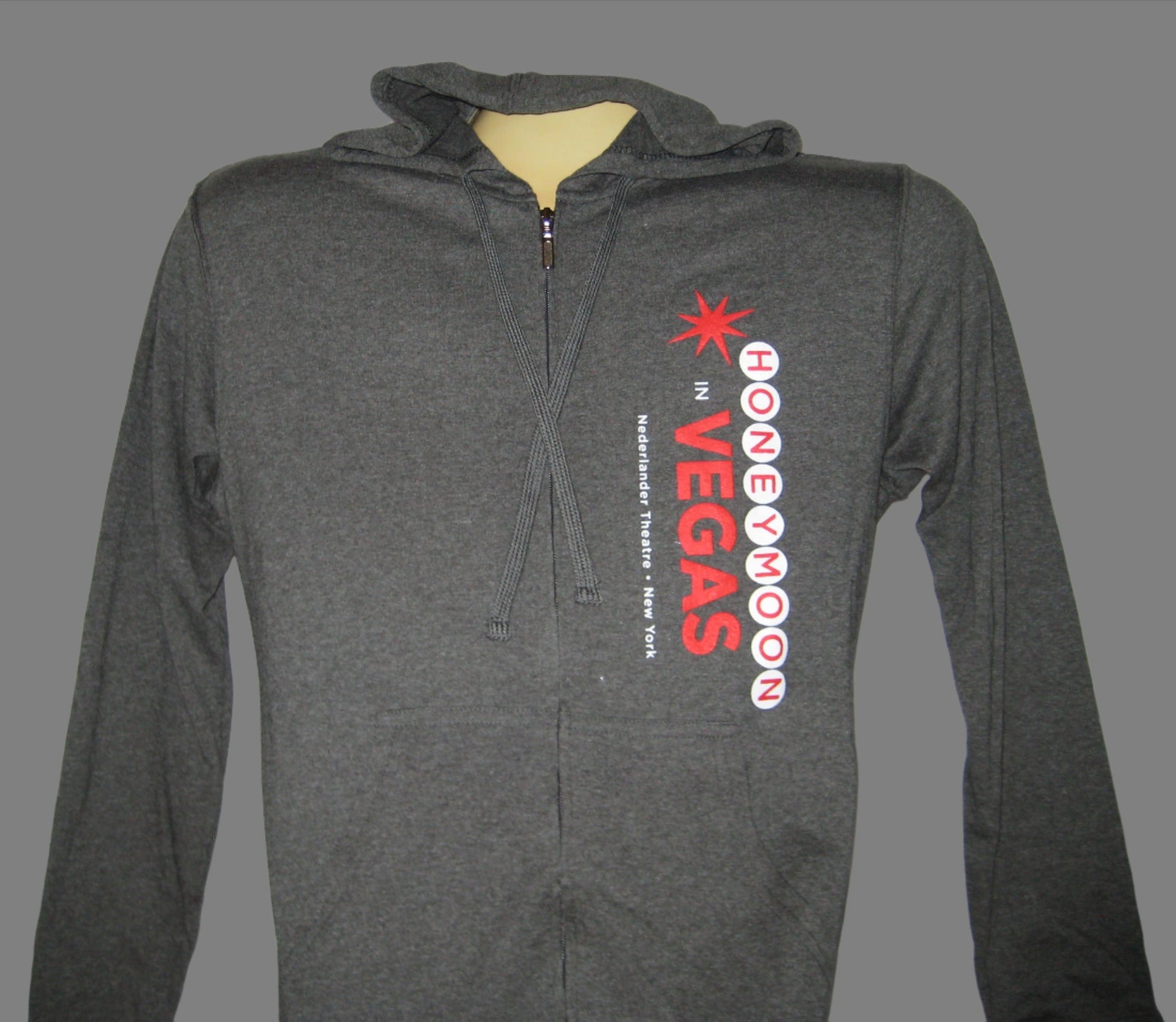 This Honeymoon in Vegas beach hoodie is made of a lightweight, breathable fabric that is 60% cotton and 40% polyester. The cotton makes it comfy, and the polyester makes it strong and durable. From the production of the show at Nederlander Theatre * New York.