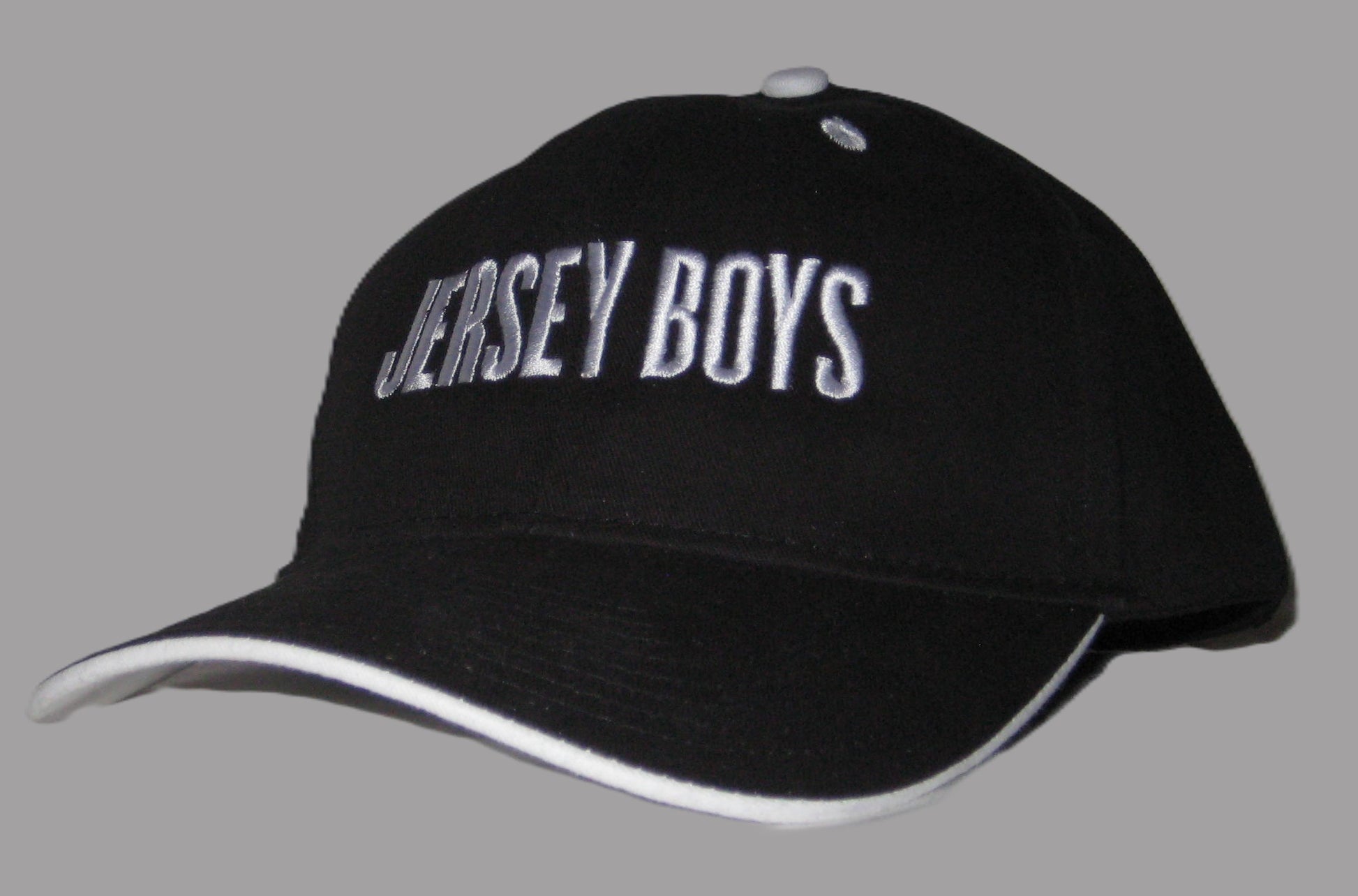 This black hat is a great accessory for any Jersey Boys fan. It's made of 100% cotton and features an embroidered design of the Jersey Boys logo on the front. The hat is adjustable.