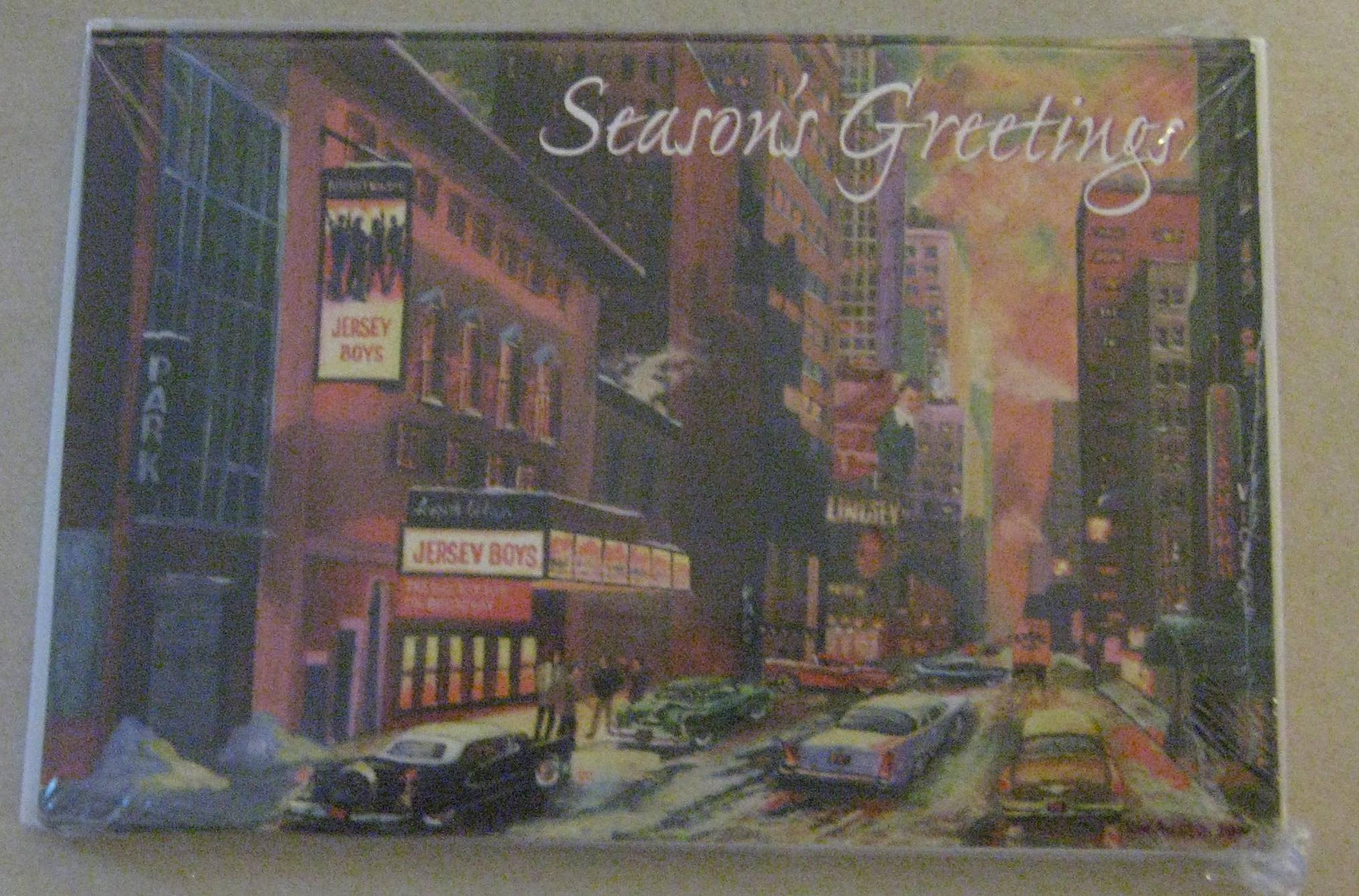 Jersey Boys Holiday greeting Cards are a great way to spread holiday cheer to family and friends. These cards feature the Broadway theatre show "Jersey Boys" and are sure to put a smile on everyone's face. Set of 8, Blank inside.