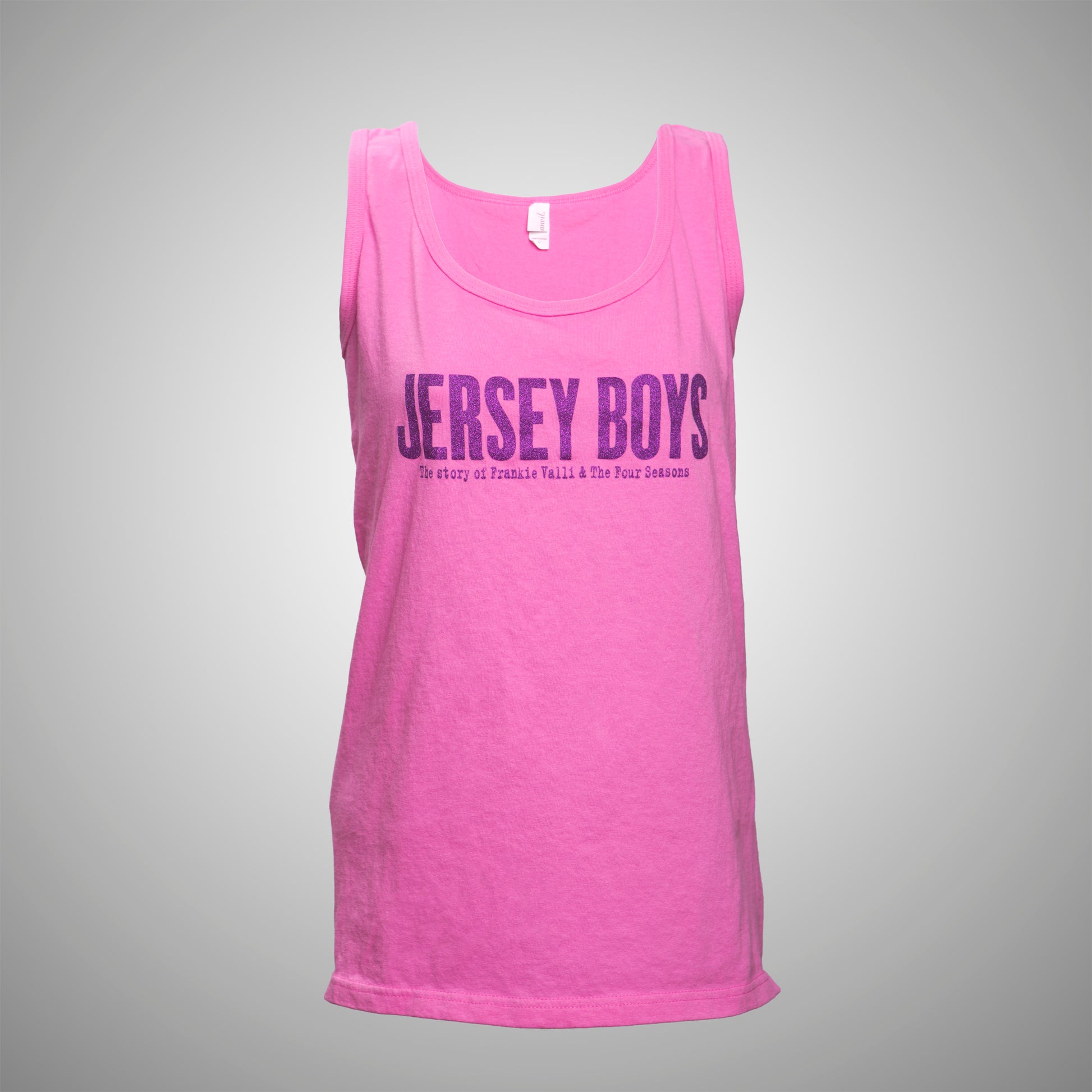 This Jersey Boys Pink Tank Top is a must-have for any fan. It features the show's logo in purple glitter, which adds a touch of bling to any outfit.