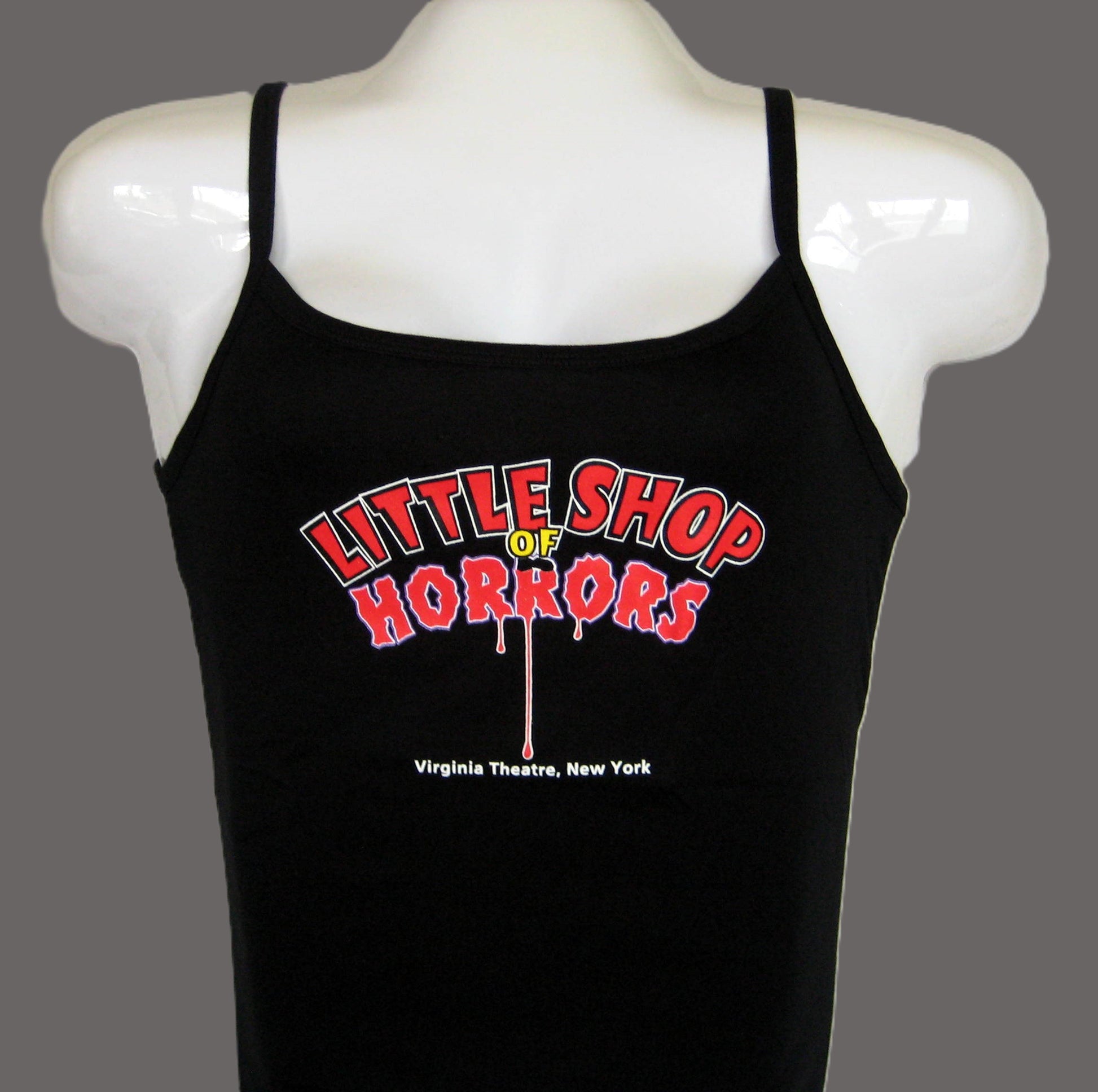 This Little Shop of Horrors Black Tank Top is for ladies and comes from the production run at the Virginia Theatre in New York City. It features a unique design that is inspired by the famous musical. The tank top is made of a lightweight, breathable fabric that is perfect for hot summer days. It is also very comfortable and flattering, and is sure to turn heads wherever you wear it.